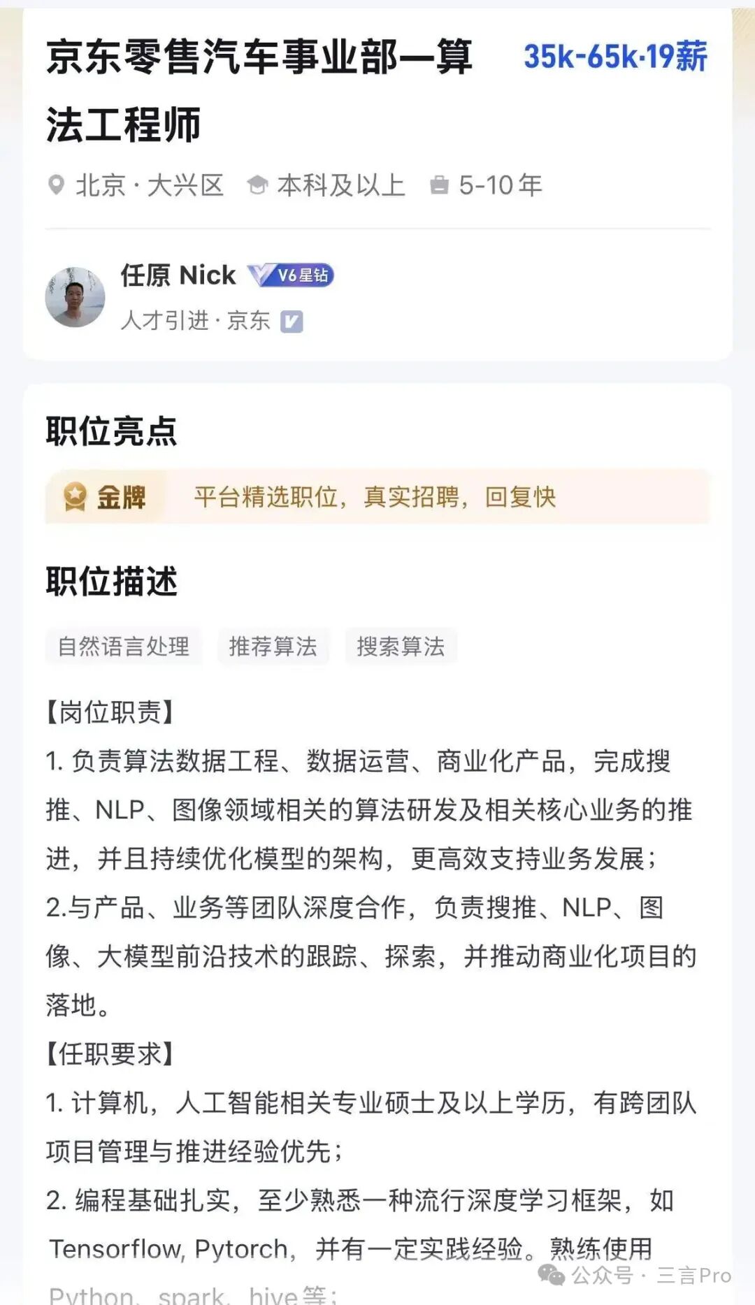 Among them, the maximum annual salary for the algorithm position in the retail business unit can reach 1.23 million yuan (35k-65k * 19 salary), requiring mature experience in algorithms, deep learning, large models and other technologies.
